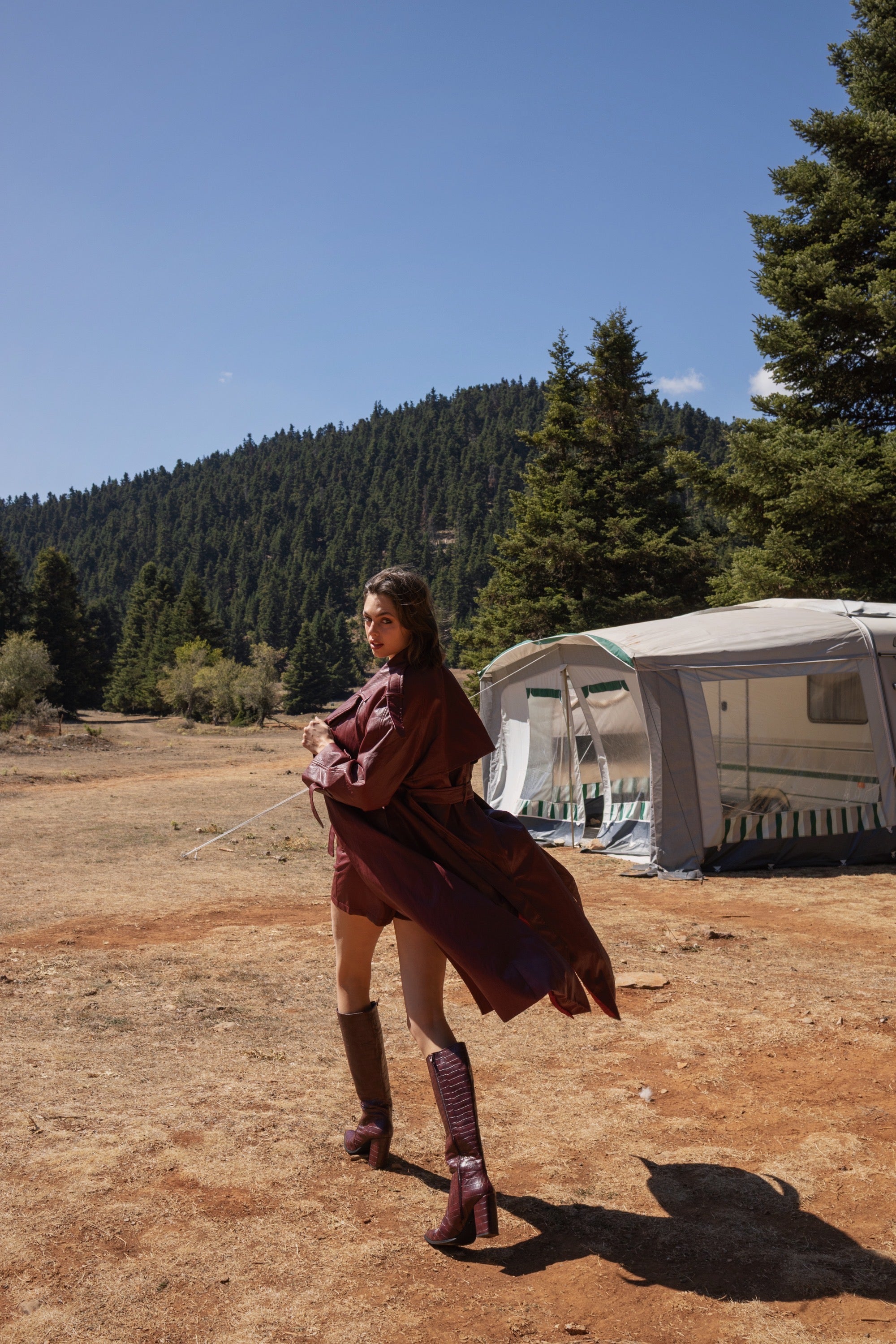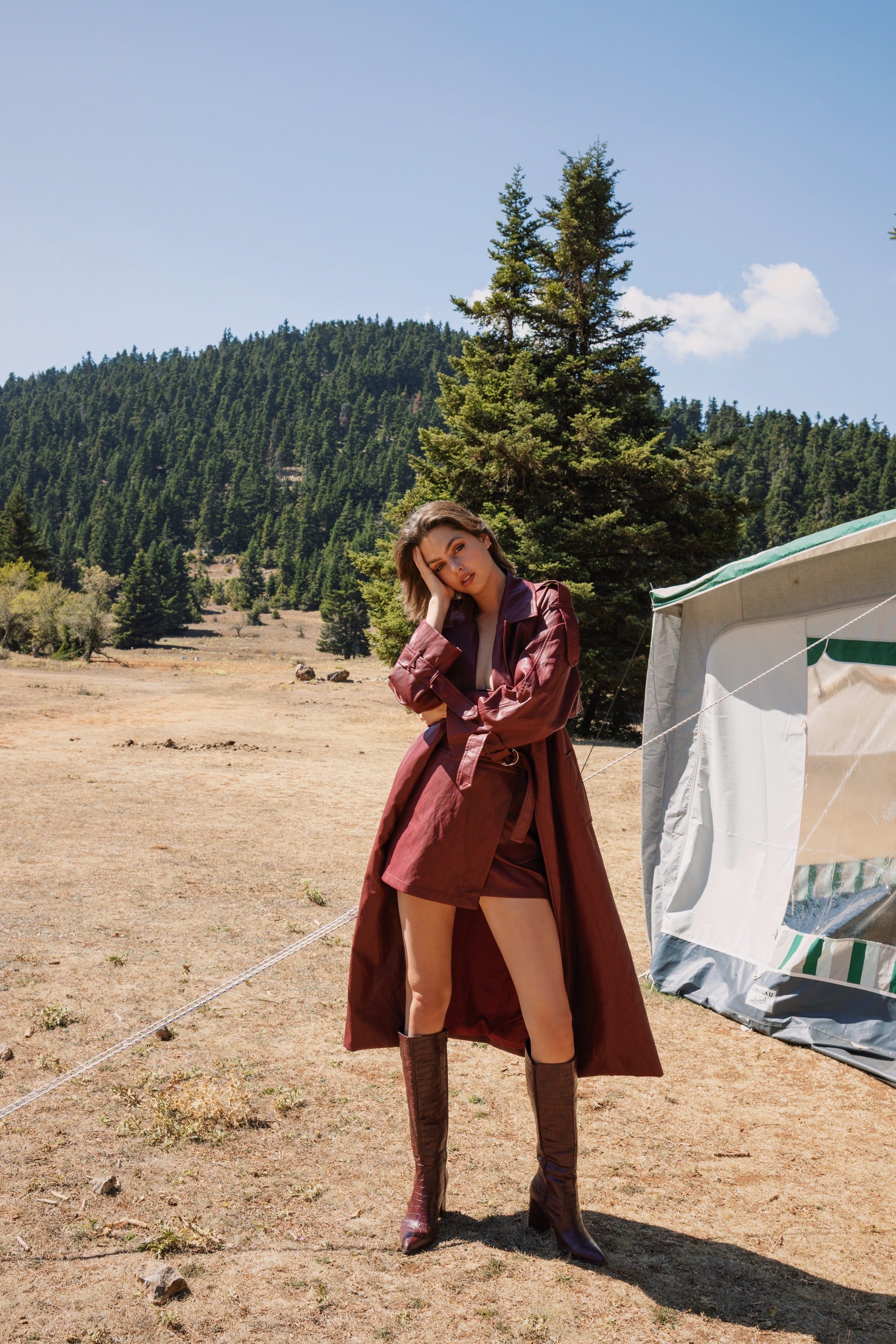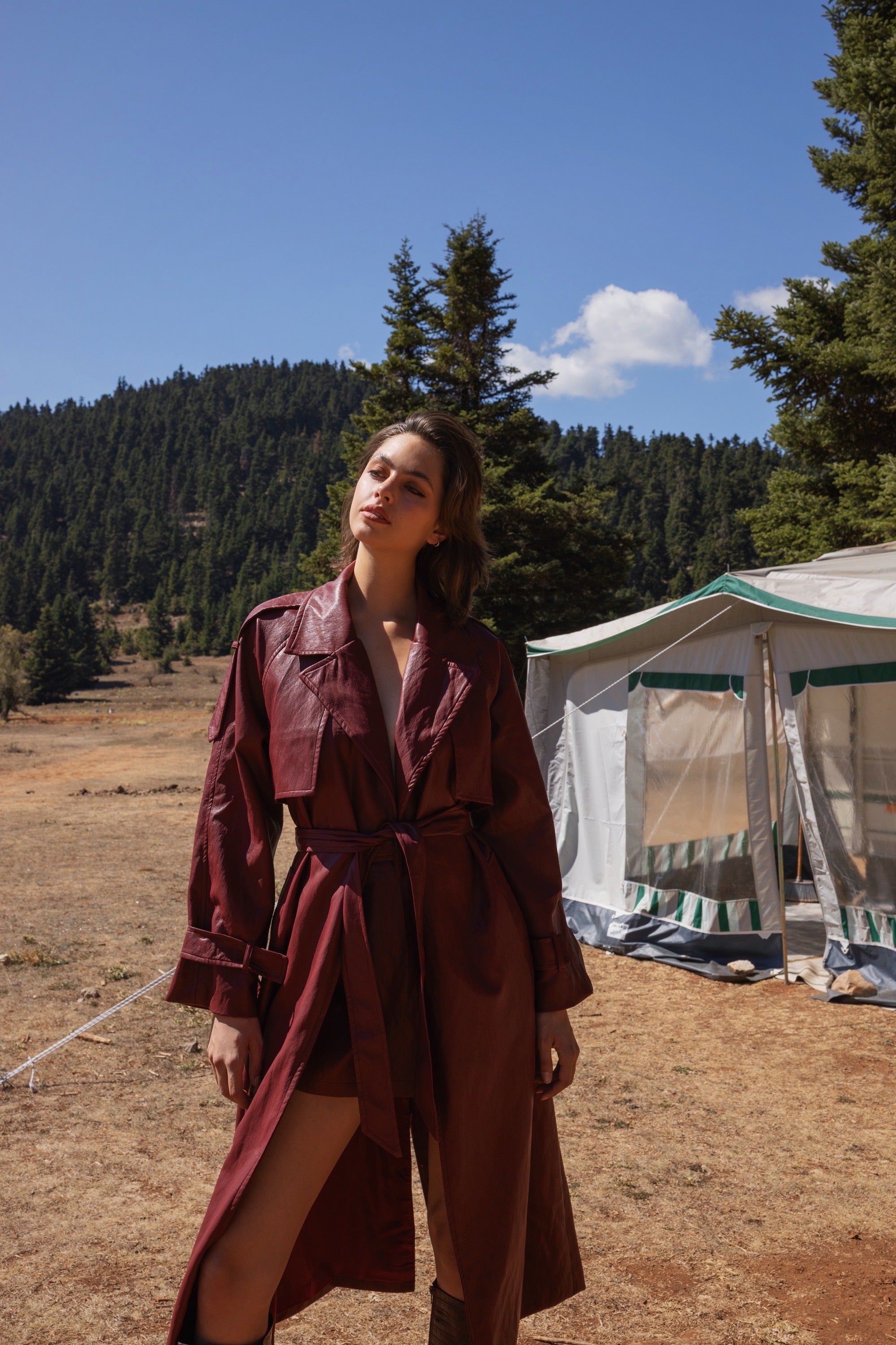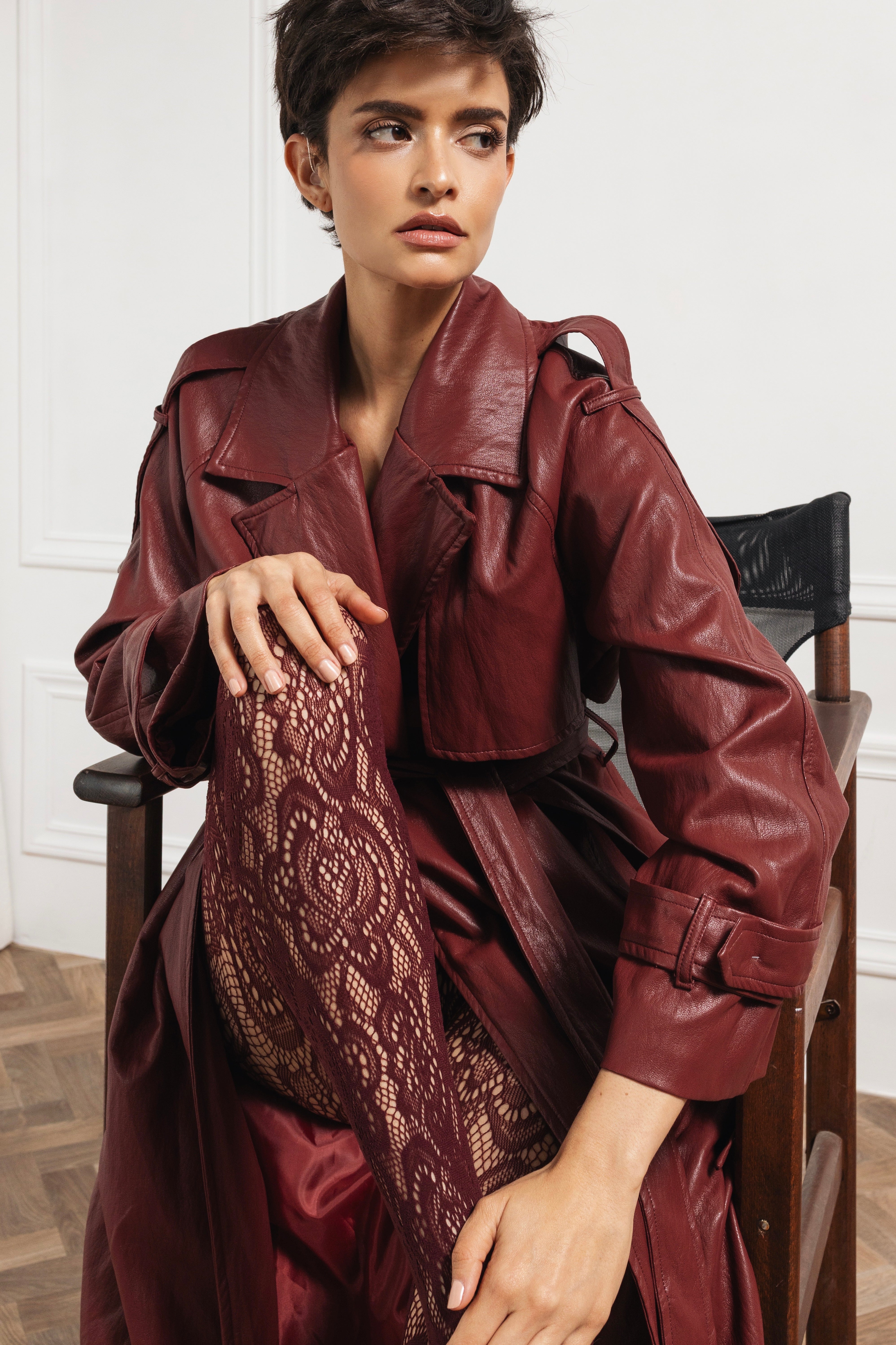Faux leather long coat